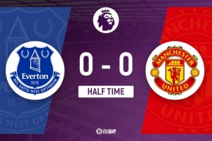半场-曼联暂0-0埃弗顿 阿玛德造险红魔控球超6成+7射门未果
