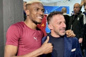 赛后,加拉塔萨雷前锋奥斯梅恩向尤文图斯传奇皮耶罗索要合影,后者是奥斯梅恩最喜爱和崇拜的足球偶像之一。