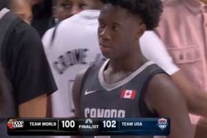 本场比赛,世界队球员、加拿大未来之星萨德勒出场43分钟18投10中,三分5中3、罚球10中6空砍全场最高29分外加4篮板7助攻2抢断,也有最多的11次失误,正负值-4。