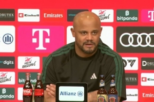 体育资讯2月22日讯 拜仁在本轮德甲焦点战3-2险胜法兰克福,主帅孔帕尼在赛后接受采访谈及相关话题。