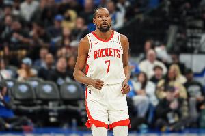 上半场,火箭球星杜兰特稳定输出,打了18分钟7投5中,三分3中2、罚球2中2砍下14分3篮板5助攻2盖帽,正负值+17最高。