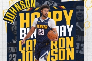 体育资讯3月4日讯 今天是掘金球员卡梅隆·约翰逊30岁生日,掘金官方发布生日海报祝约翰逊生日快乐。