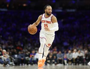 布伦森今日出场35分36秒,12投6中(三分1中0),罚球9中8,拿到20分3篮板6助攻,正负值-10。